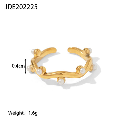 French women's fashion versatile titanium steel ring 18K gold-plated irregular inlaid white pearl open ring